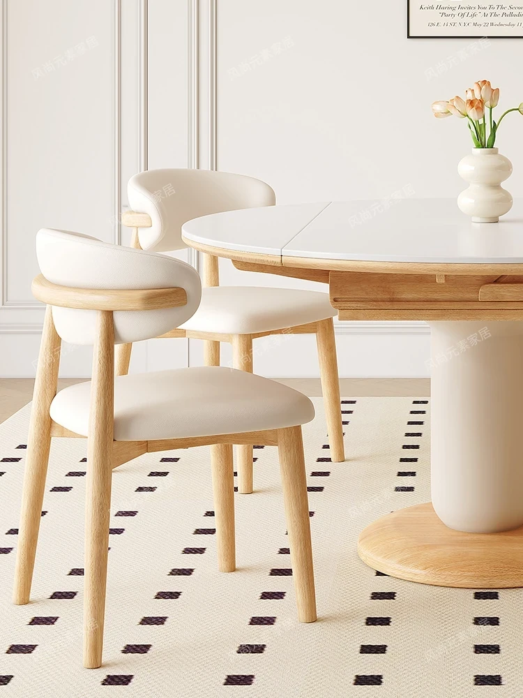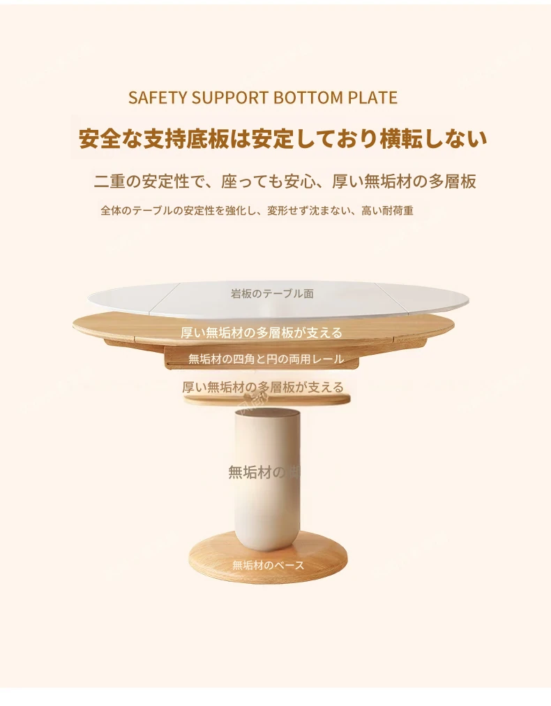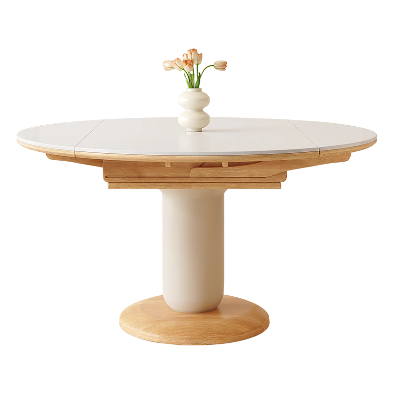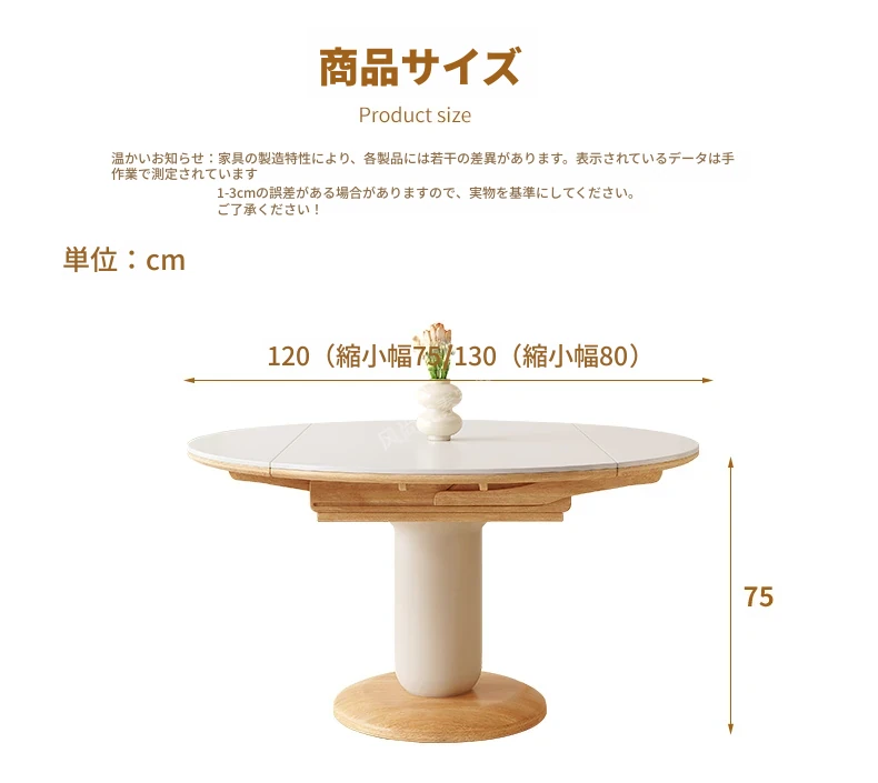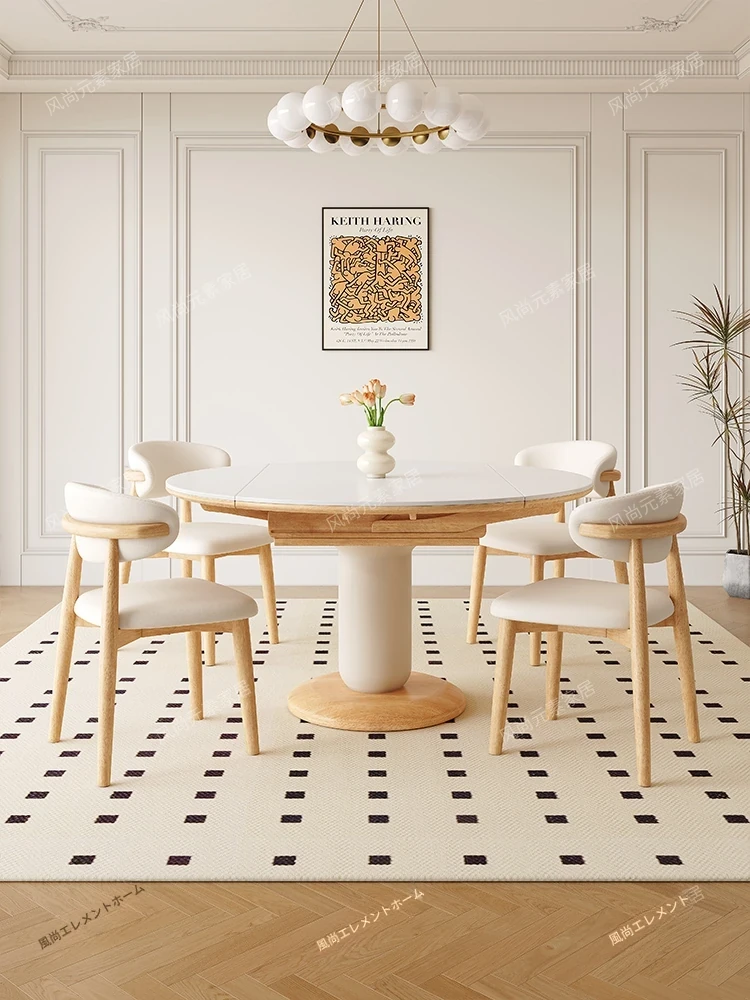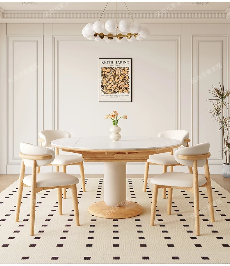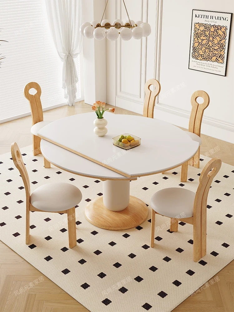 クリーム風デザインの岩板ダイニングテーブル&チェアセット|北欧モダンスタイル|四角と丸の二役をこなす伸縮可能な家庭用食卓|小さなスペースにも最適!