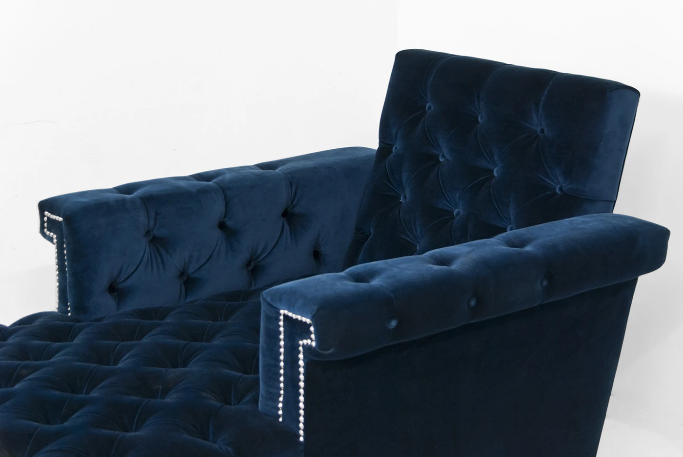 北欧スタイルの実木製リベットボタン付き布張りシングルソファチェア - エレガントなデザインの貴族のようなデイベッド、あなたのリビングを特別に演出します!快適さとスタイルを兼ね備えた家具です。