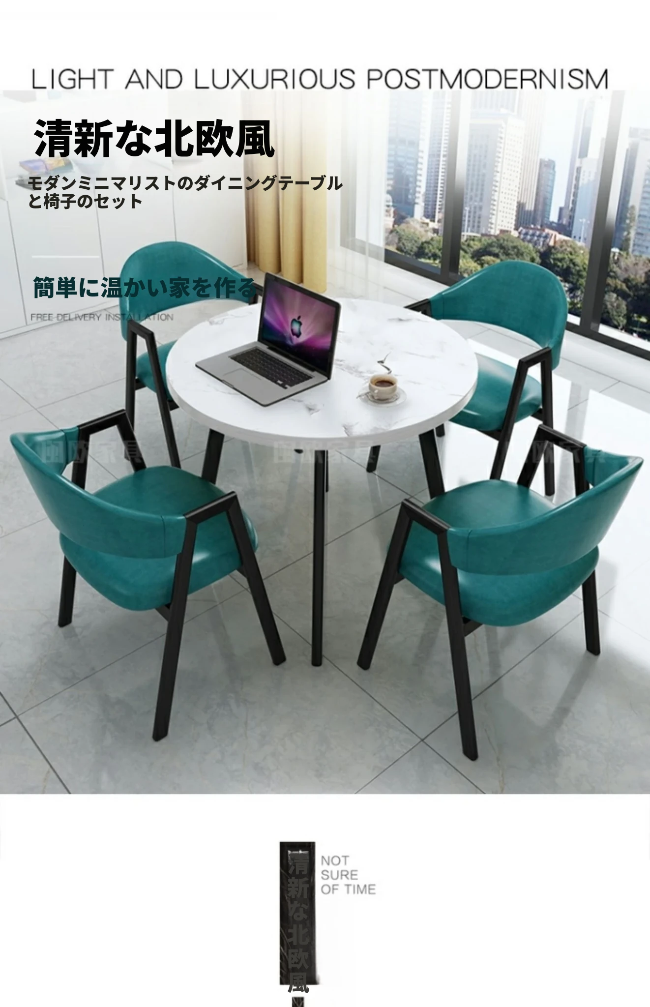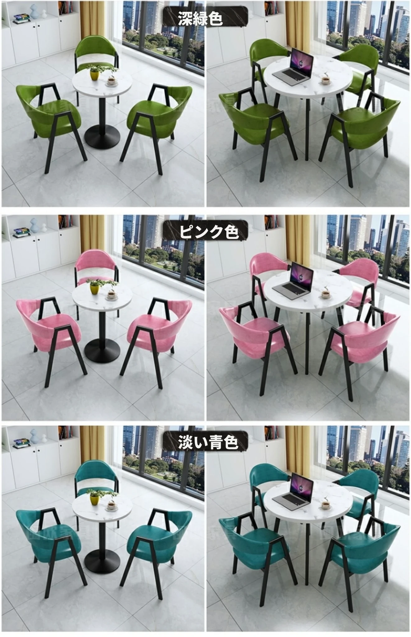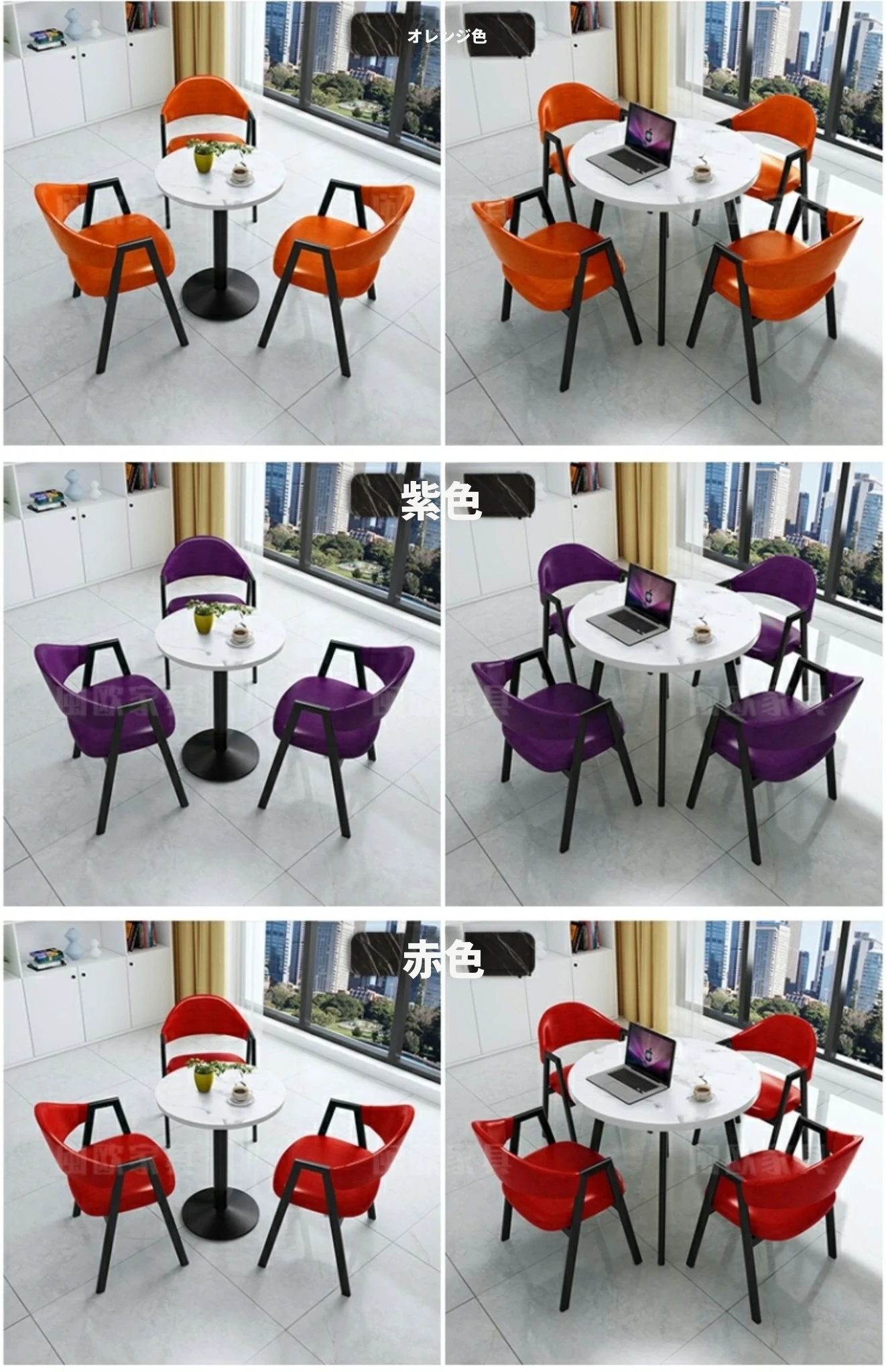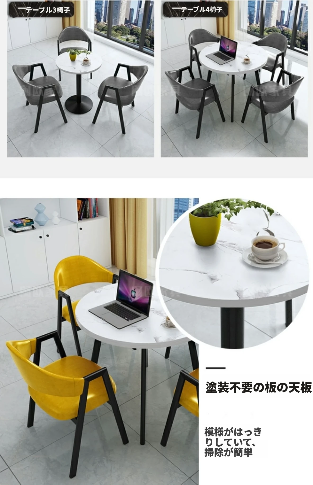 シンプルで個性的な洽談テーブル&チェアセット!リラックスできる北欧スタイルの小さな丸テーブル付き。販売所や接待エリアに最適で、お客様を心地よくお迎えします。