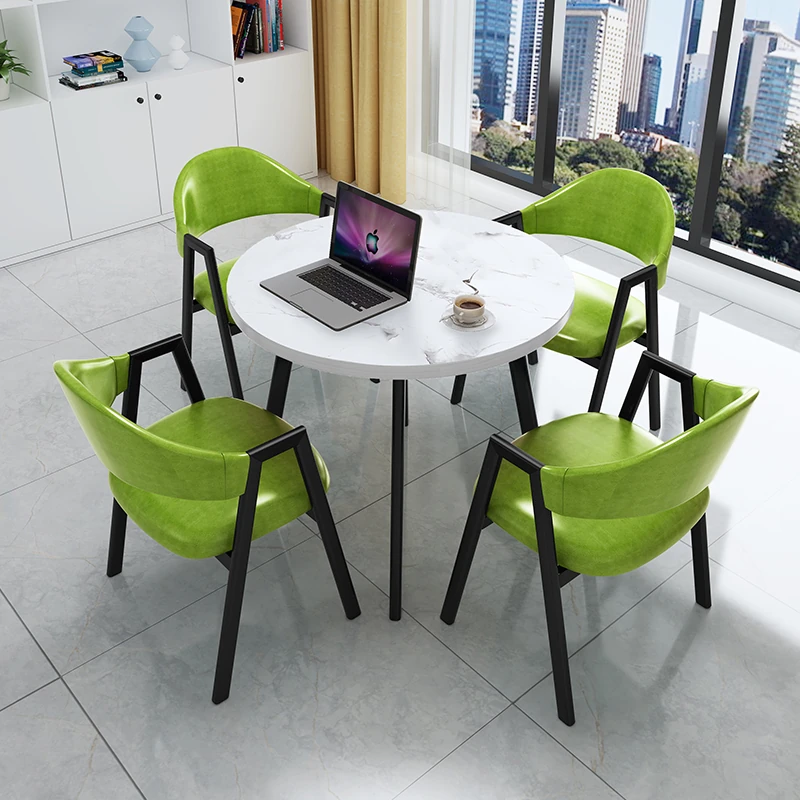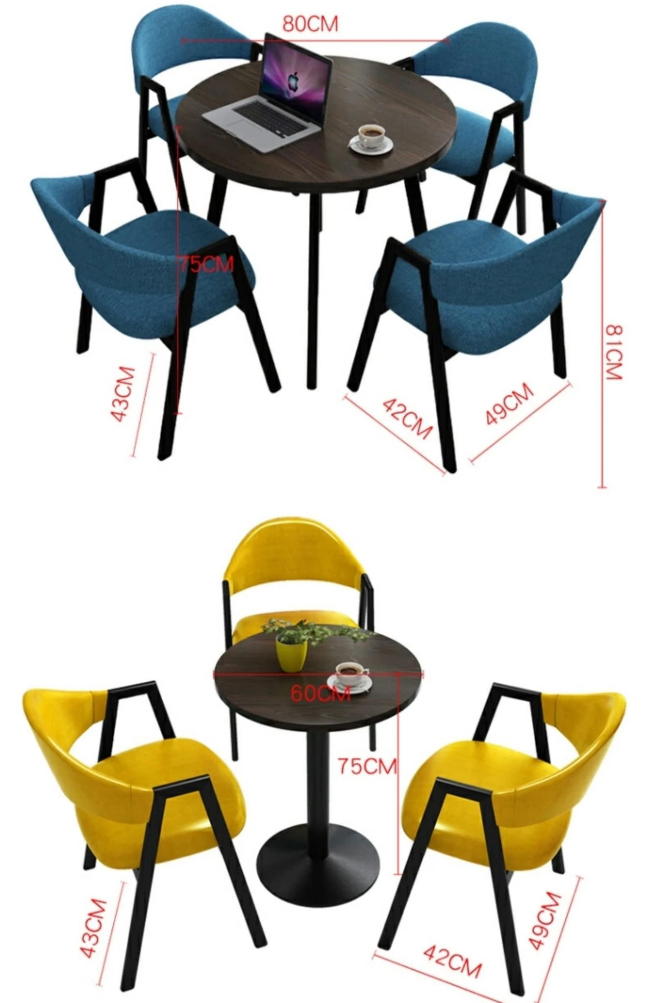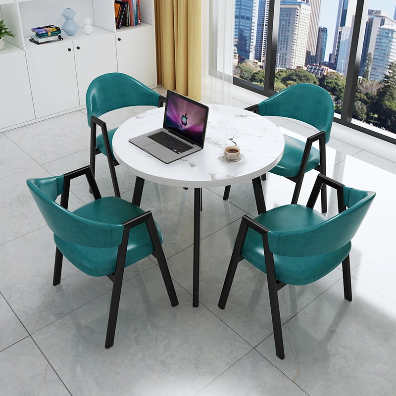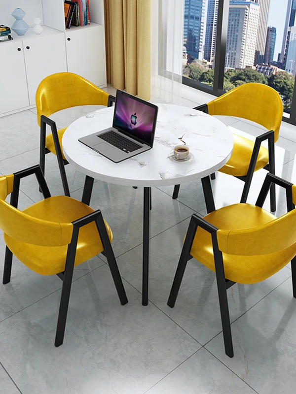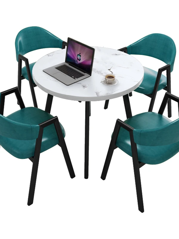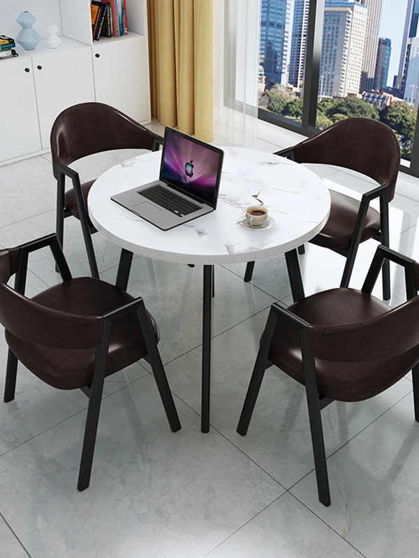 シンプルで個性的な洽談テーブル&チェアセット!リラックスできる北欧スタイルの小さな丸テーブル付き。販売所や接待エリアに最適で、お客様を心地よくお迎えします。