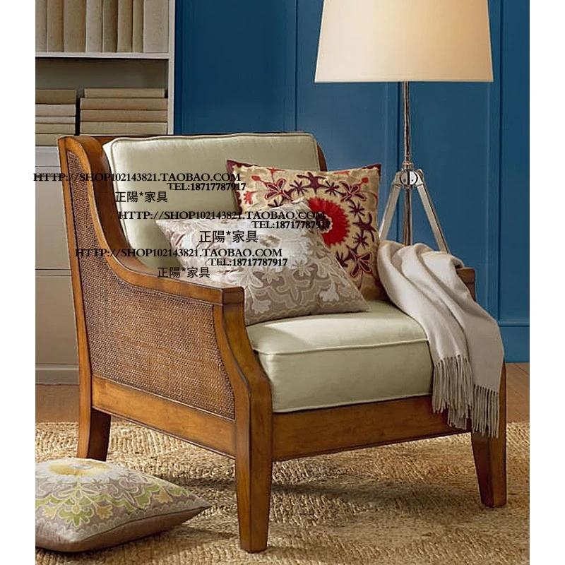 北欧スタイルのフレンチカントリー風、無垢材とラタン編みの一人掛けソファチェア。おしゃれな談話椅子や交椅子としても最適!ヴィラにぴったりのコンビネーション家具で、心地よい空間を演出します。