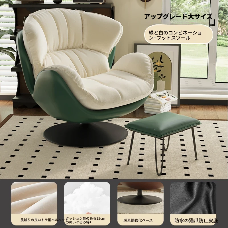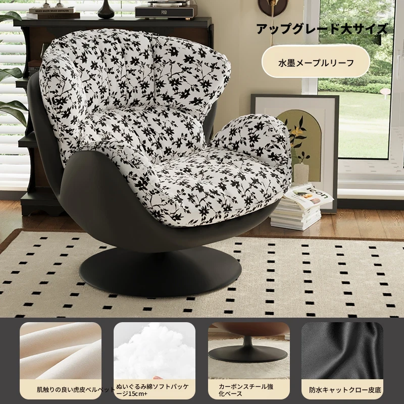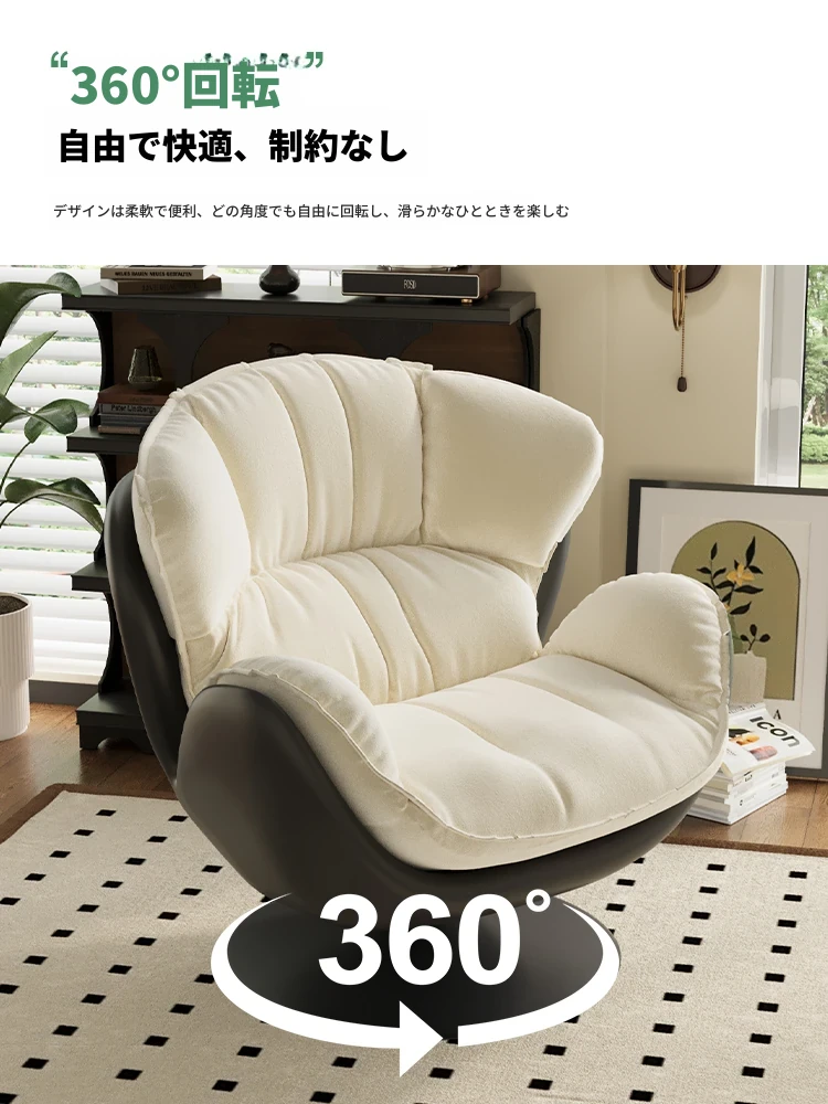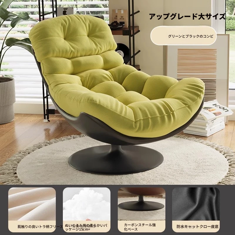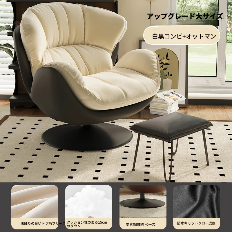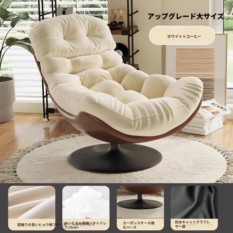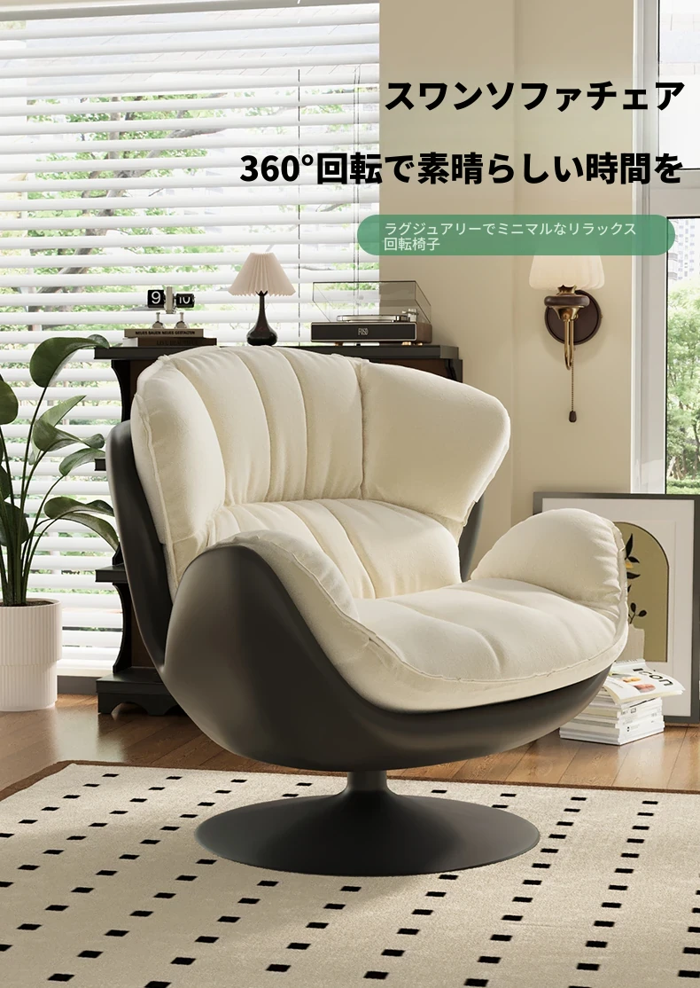 スワン型リクライニングラウンジチェア - 寝転びながらくつろげる一人用回転式ソファ。リビングや寝室、バルコニーにぴったりな卵型デザイン、心地よい休息を提供します!