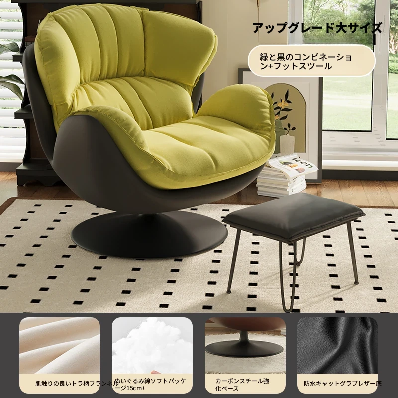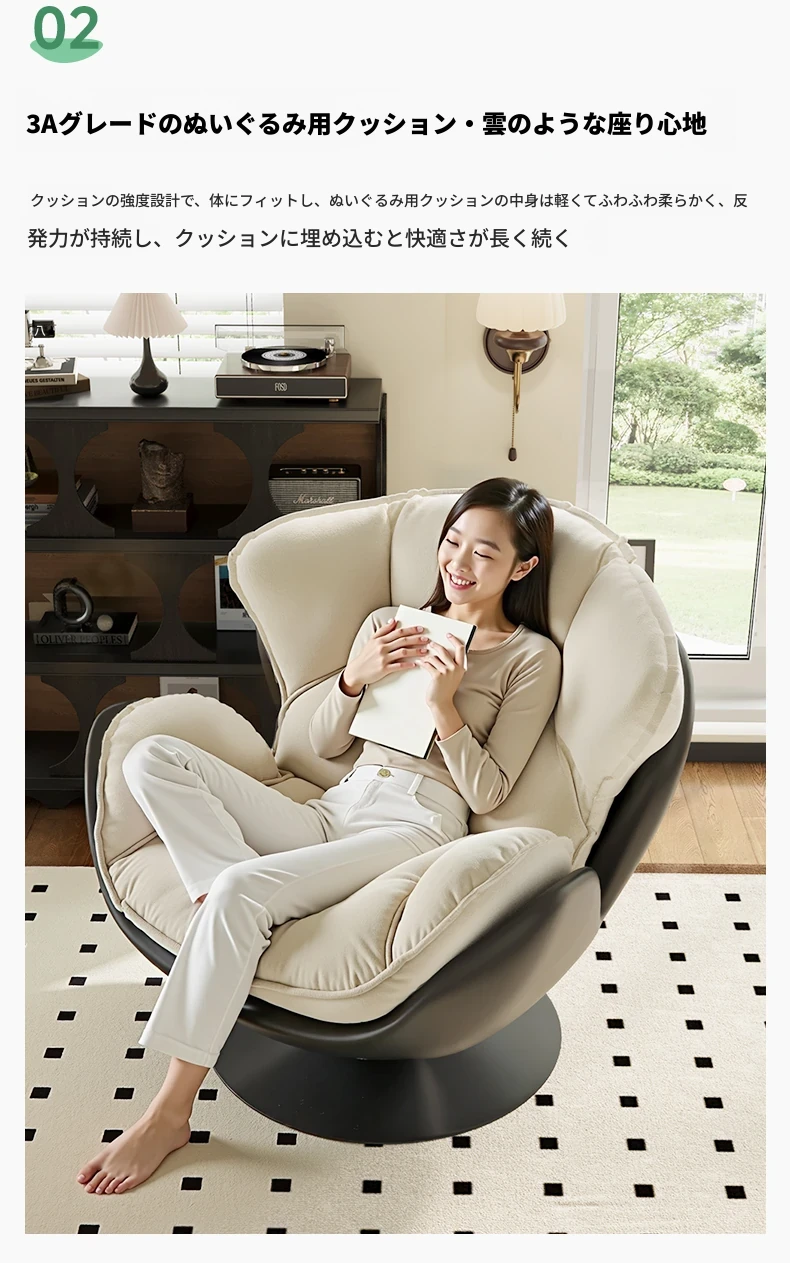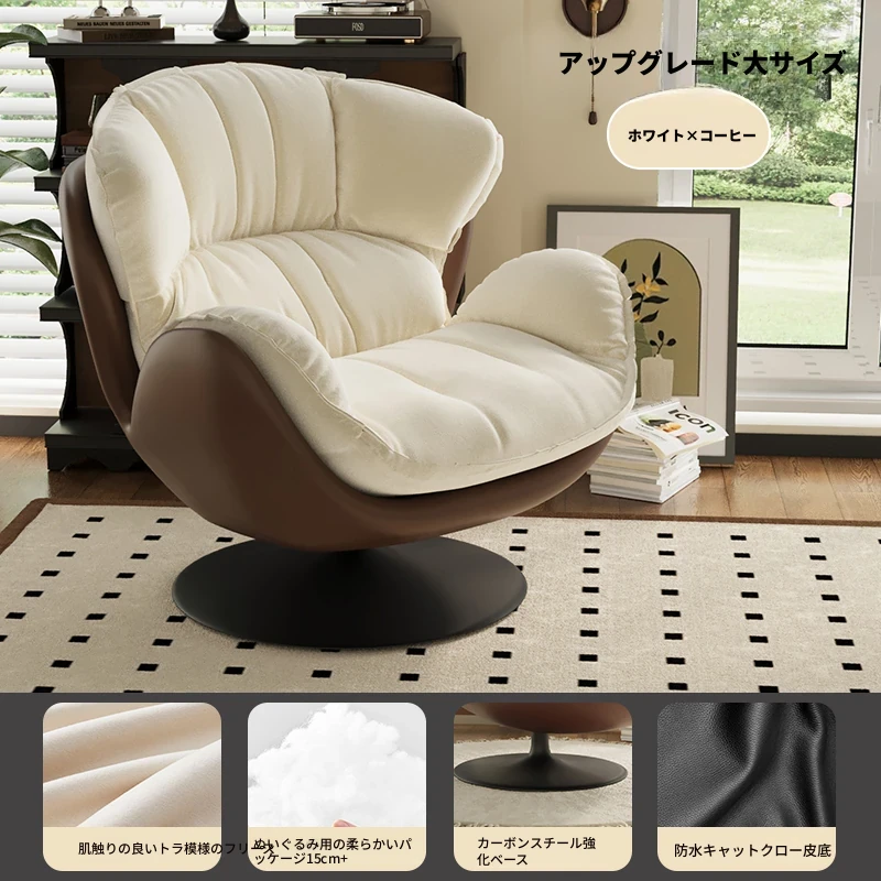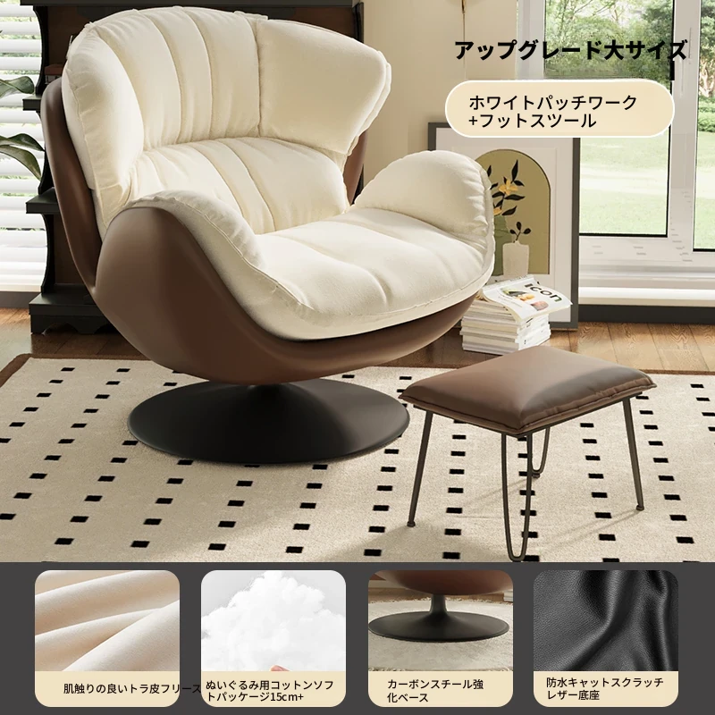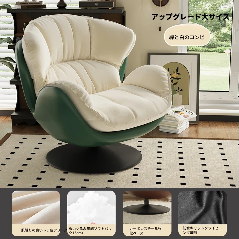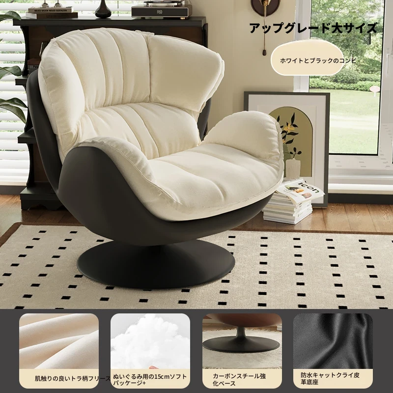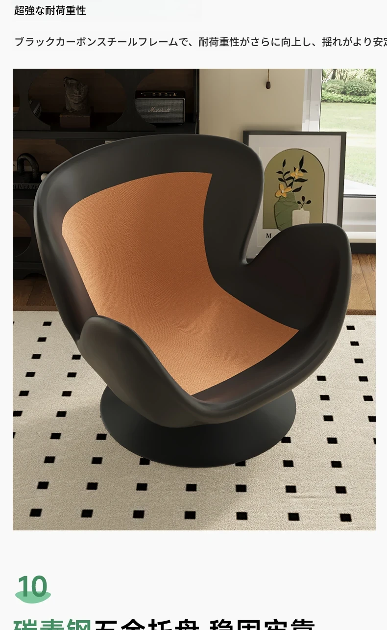 スワン型リクライニングラウンジチェア - 寝転びながらくつろげる一人用回転式ソファ。リビングや寝室、バルコニーにぴったりな卵型デザイン、心地よい休息を提供します!