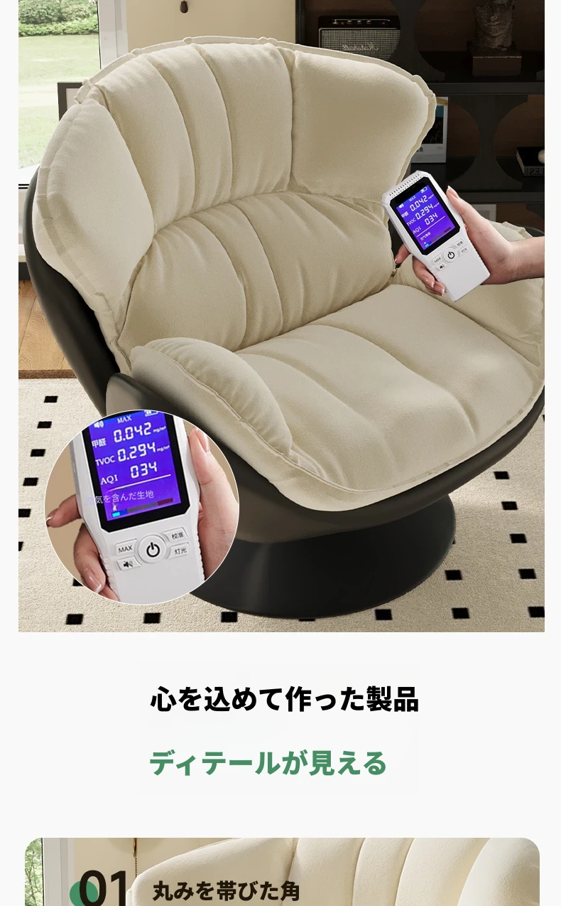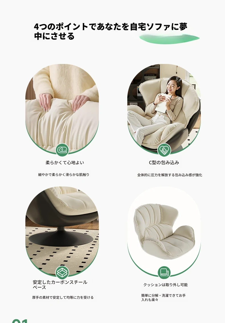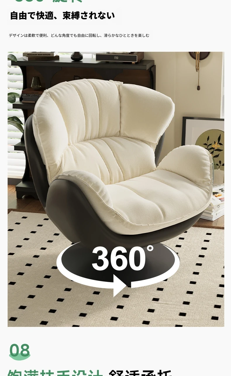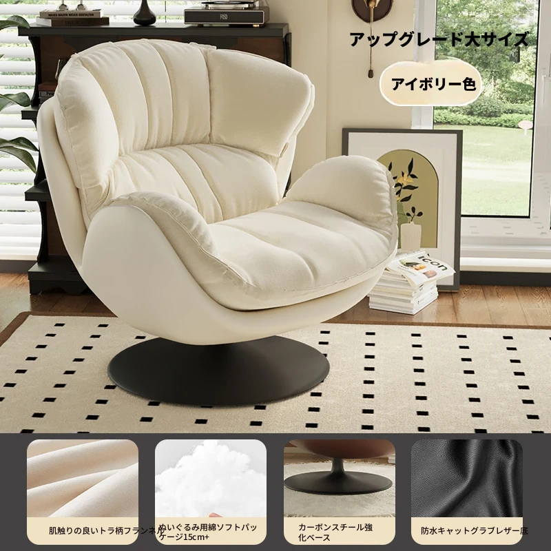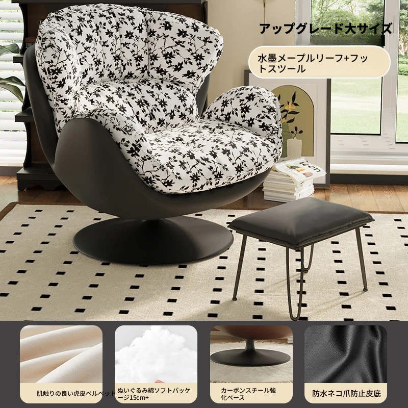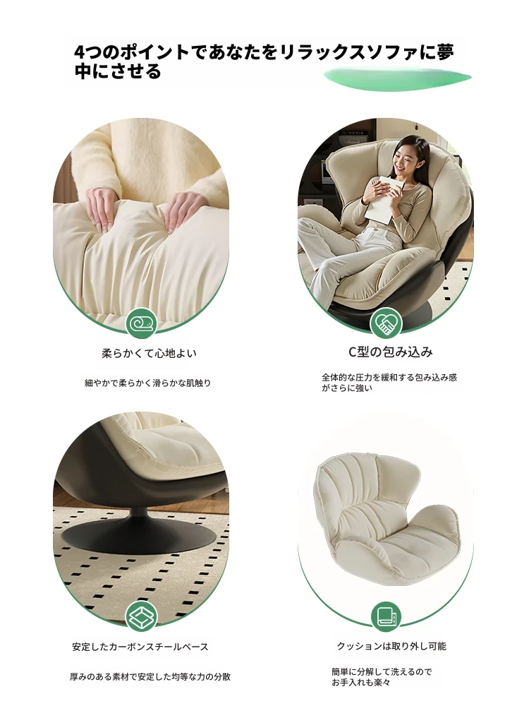 スワン型リクライニングラウンジチェア - 寝転びながらくつろげる一人用回転式ソファ。リビングや寝室、バルコニーにぴったりな卵型デザイン、心地よい休息を提供します!