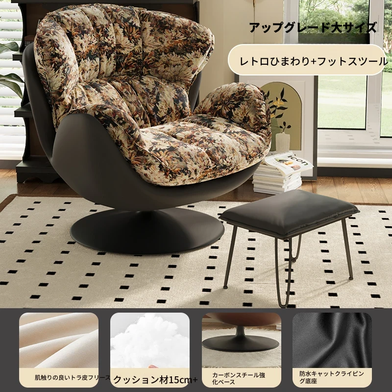レトロひまわり+フットレスト【アップグレード360°回転】肌触りの良いスエード+カーボンスチールベース