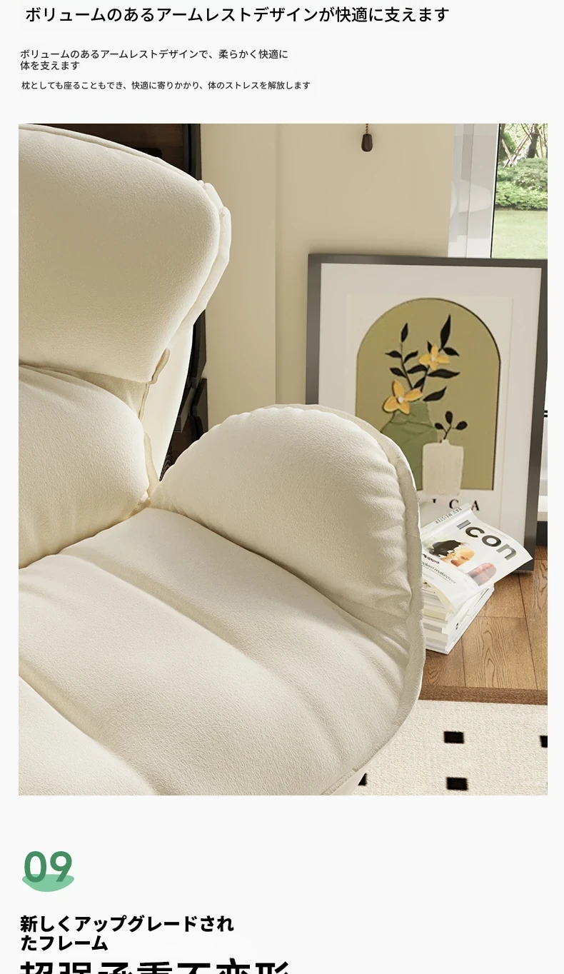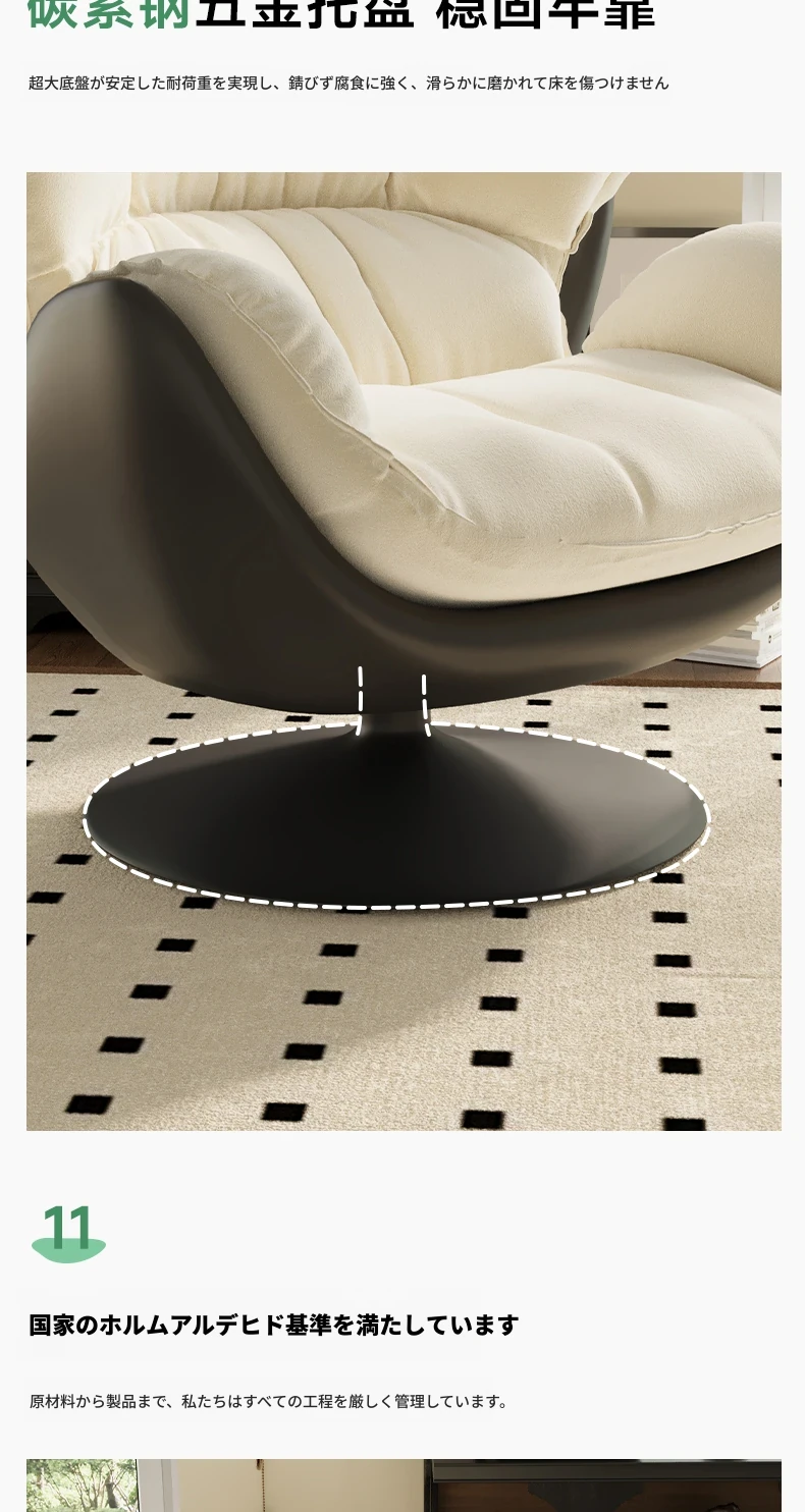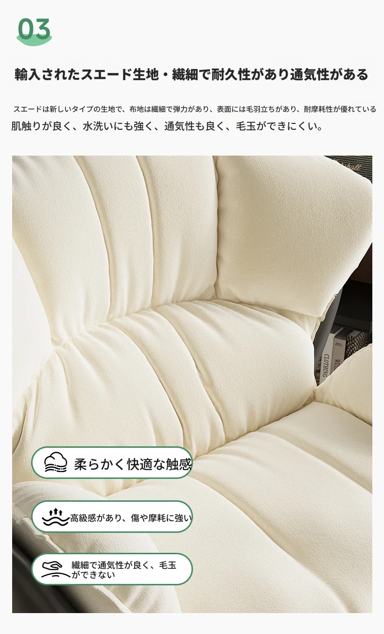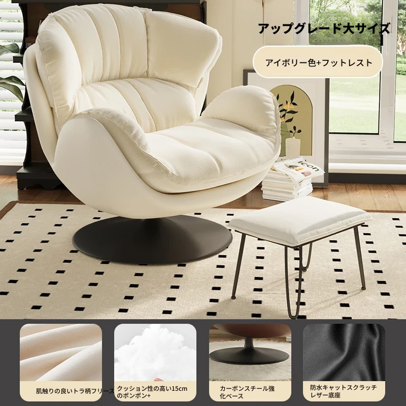ミルクホワイト+フットレスト【アップグレード360°回転】肌触りの良いスエード+カーボンスチールベース