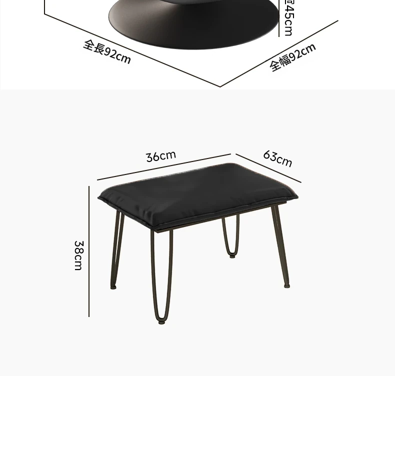米ピンブラック+フットレスト【アップグレード360°回転】肌触りの良いスエード+カーボンスチールベース