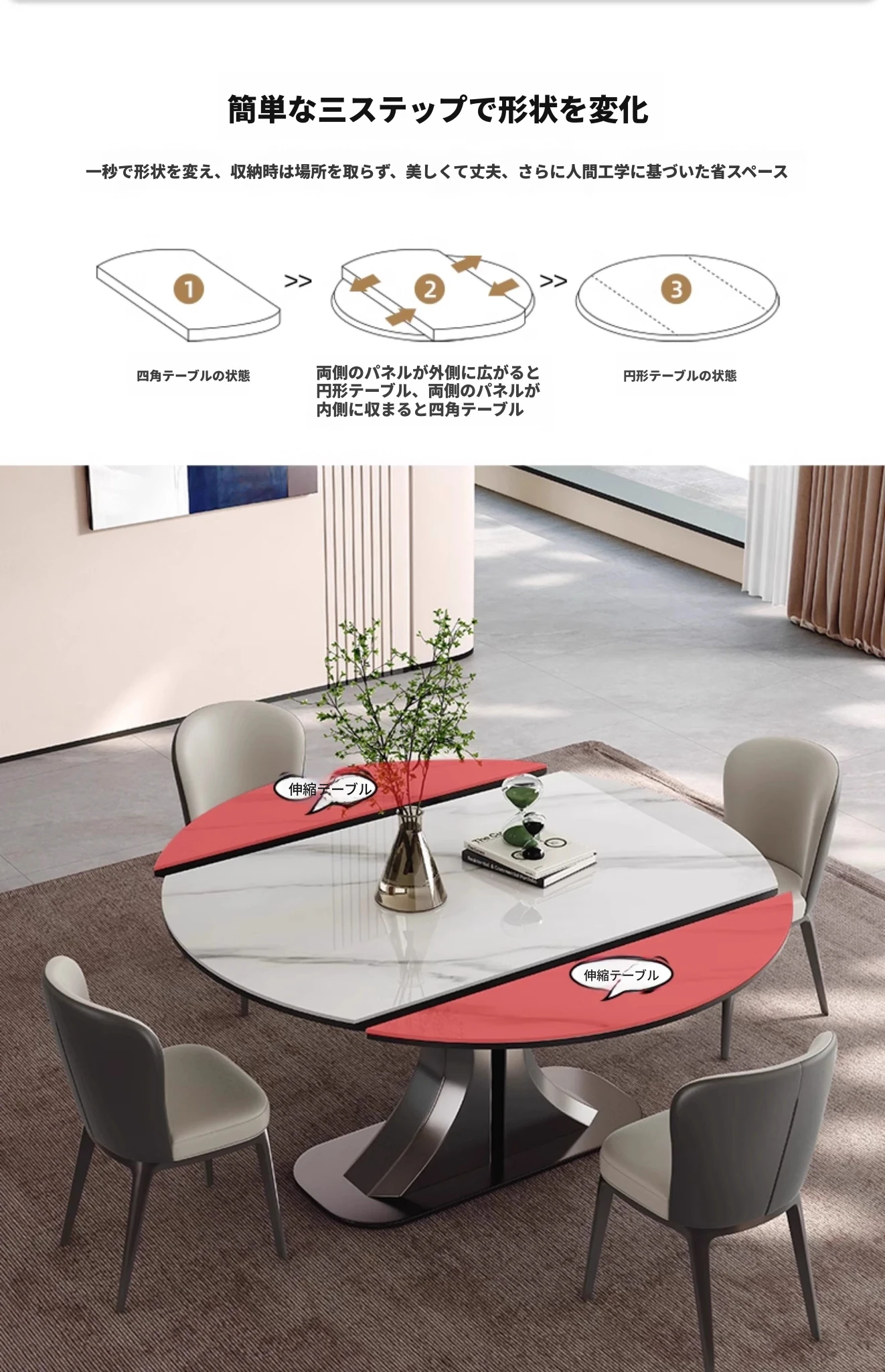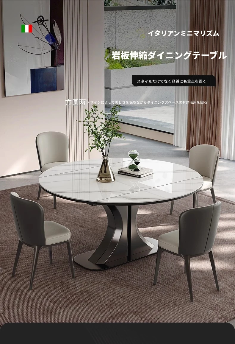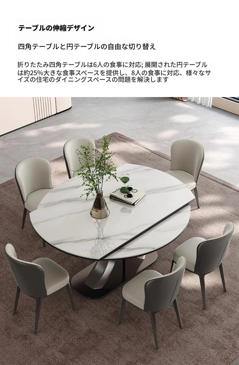 複合金属製の伸縮可能なテーブル&チェアセット - 丸型・四角型両用、折りたたみ式でイタリアンシンプルデザイン!電磁調理器対応の69cm食卓、コンパクトで使いやすい!
