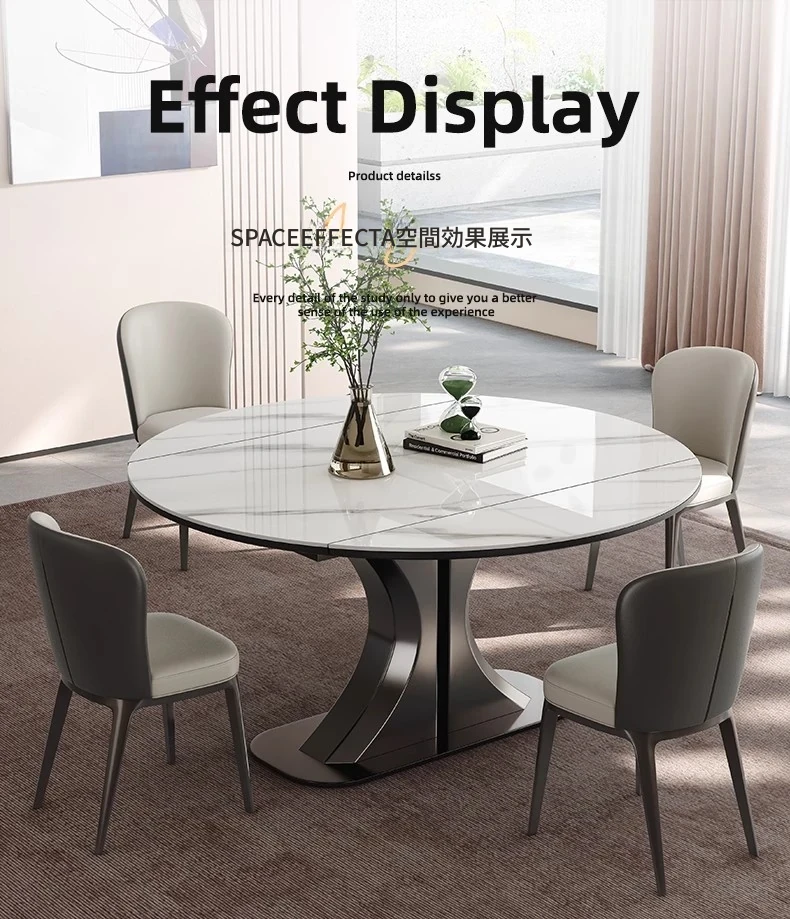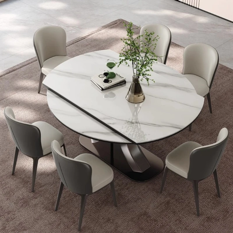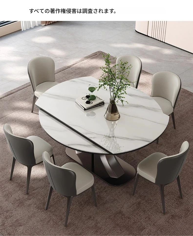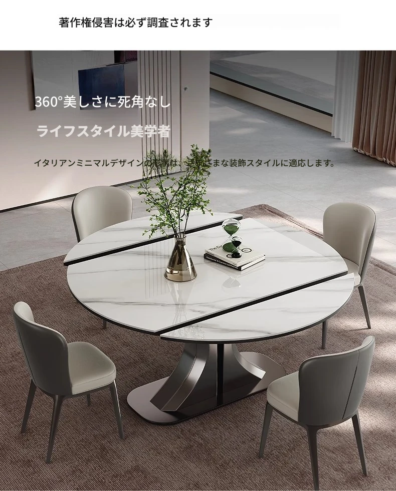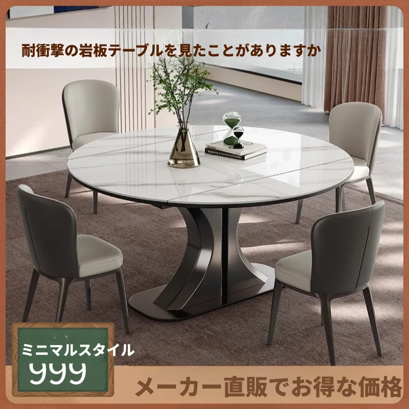 複合金属製の伸縮可能なテーブル&チェアセット - 丸型・四角型両用、折りたたみ式でイタリアンシンプルデザイン!電磁調理器対応の69cm食卓、コンパクトで使いやすい!