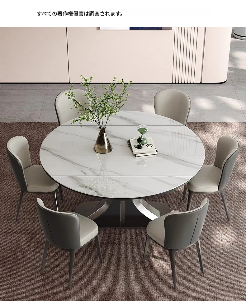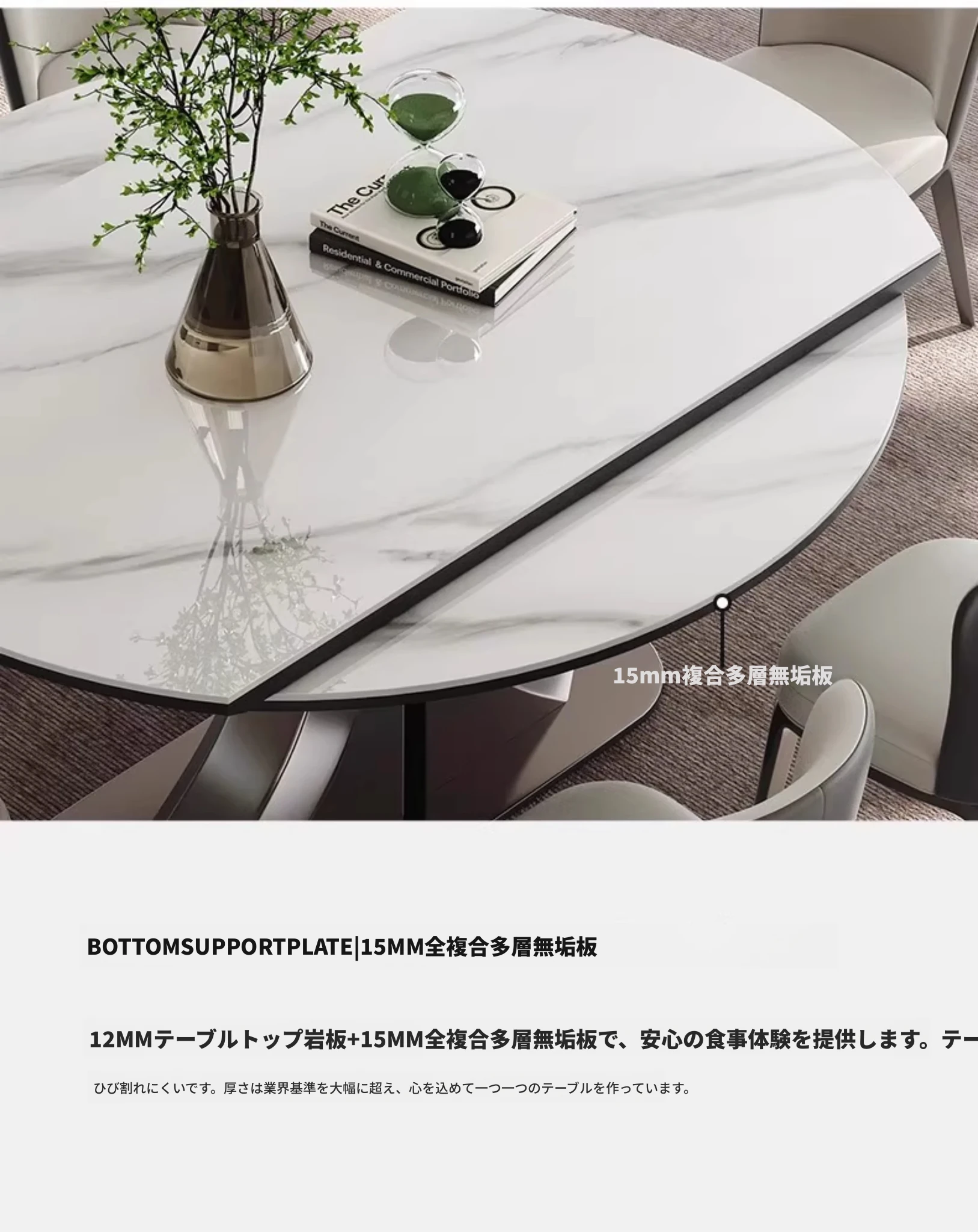 アップグレード【複合金属】デリフォン岩板+6椅子+無垢材多層全托