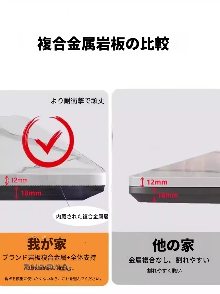 アップグレード【複合金属】デリフォン岩板+無垢材多層全托