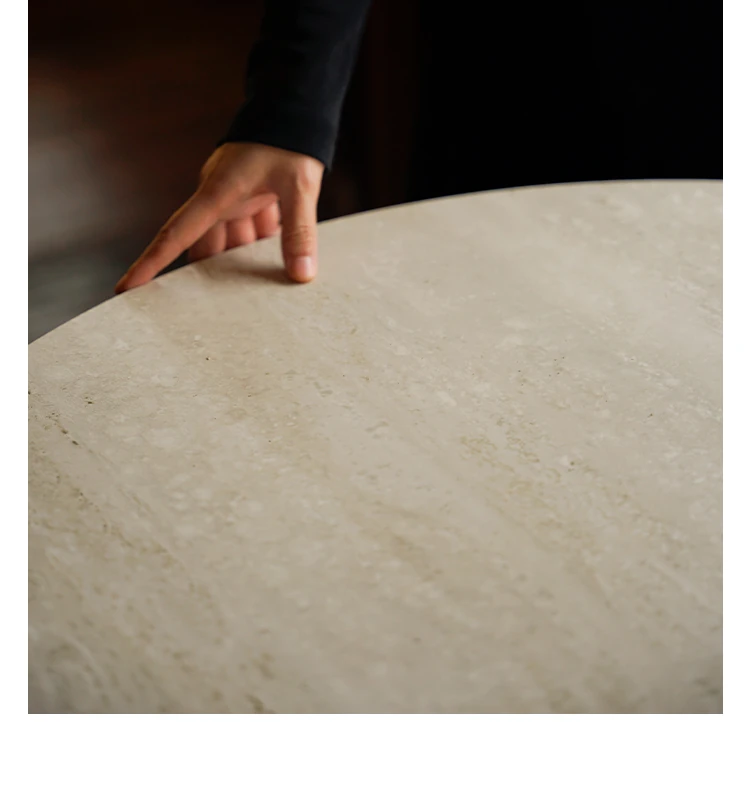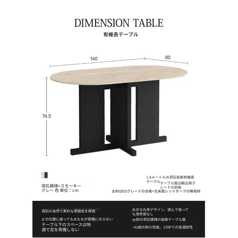 有维ダイニングテーブル洞石板(洞石模様ランダム)+スモークブラック色脚(1.4m)