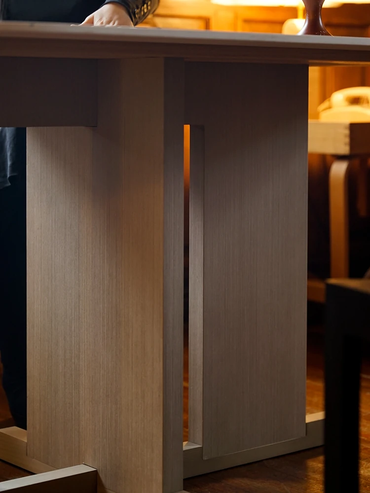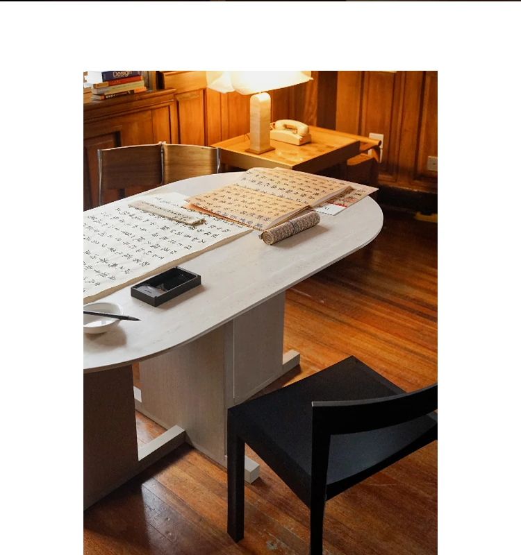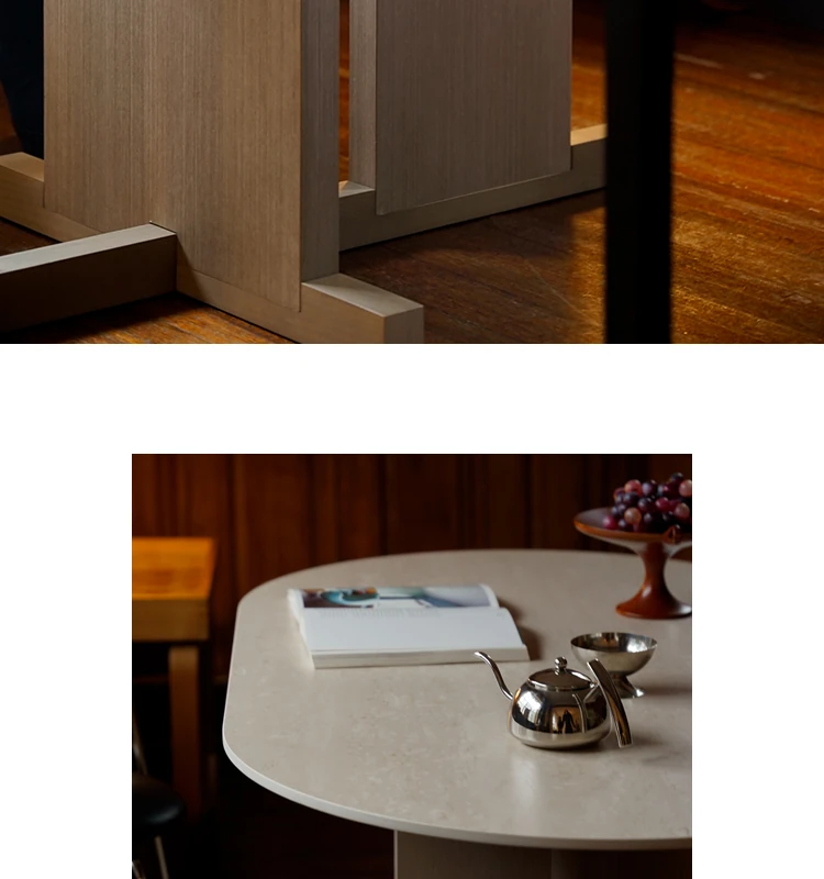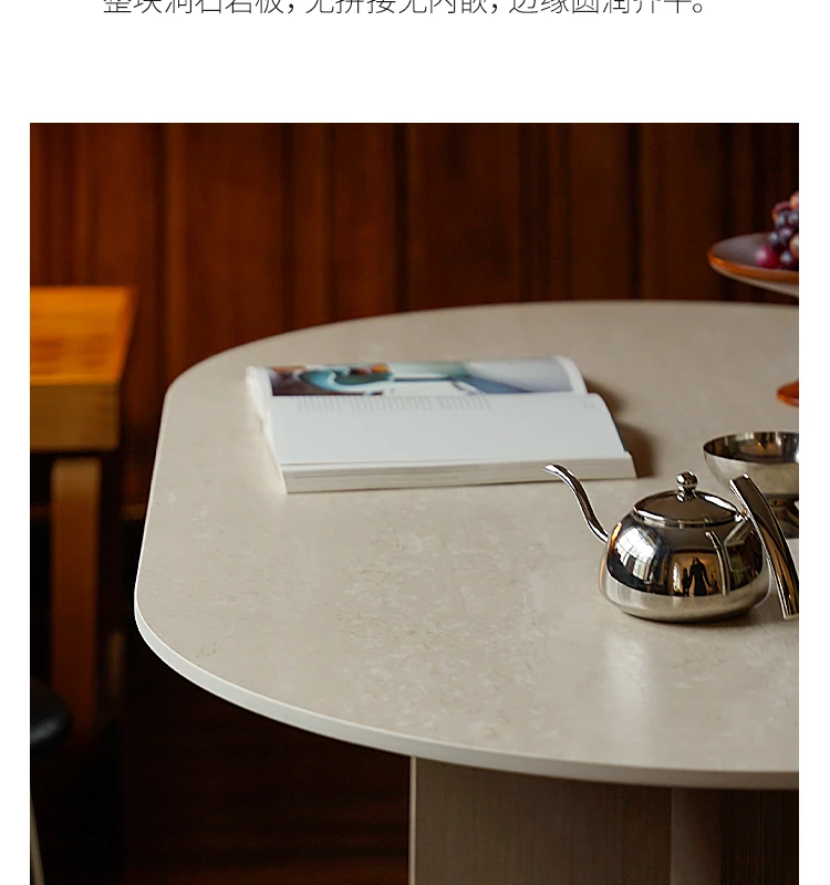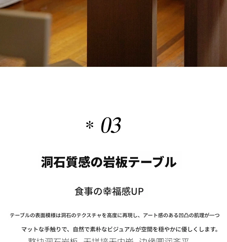 吱音のウッドテーブル - モダンでシンプルなデザインの長方形ダイニングテーブル、実木と岩板使用、家族の食事やリビングに最適な軽奢スタイル、小型住宅にもぴったり!