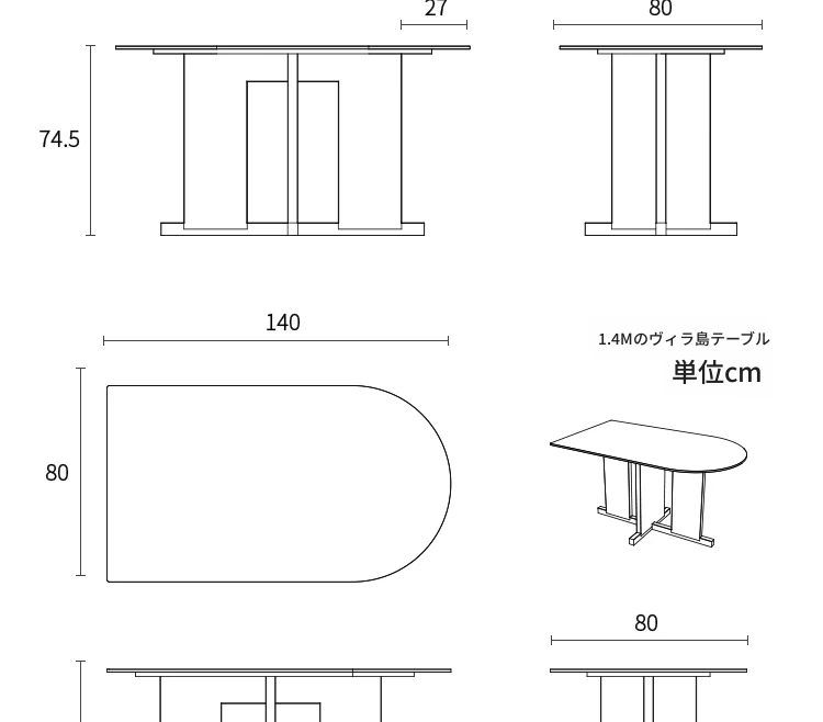有维ダイニングテーブル洞石板U型テーブル(洞石模様ランダム)(1.4mは3-6人座れます)
