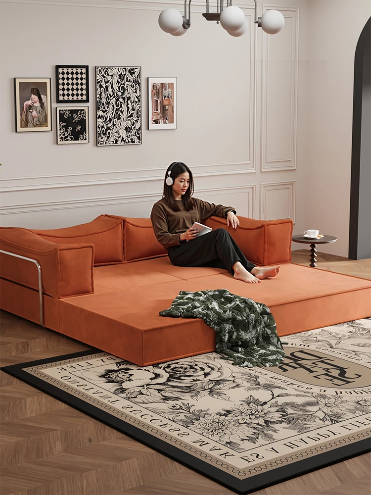 2025年新款!中古風デザインの布製ソファ。小型リビングにぴったりなモダンでシンプルな雲のような二人用折りたたみソファベッド。快適さとスタイルを両立させた、あなたの理想の空間を演出します!