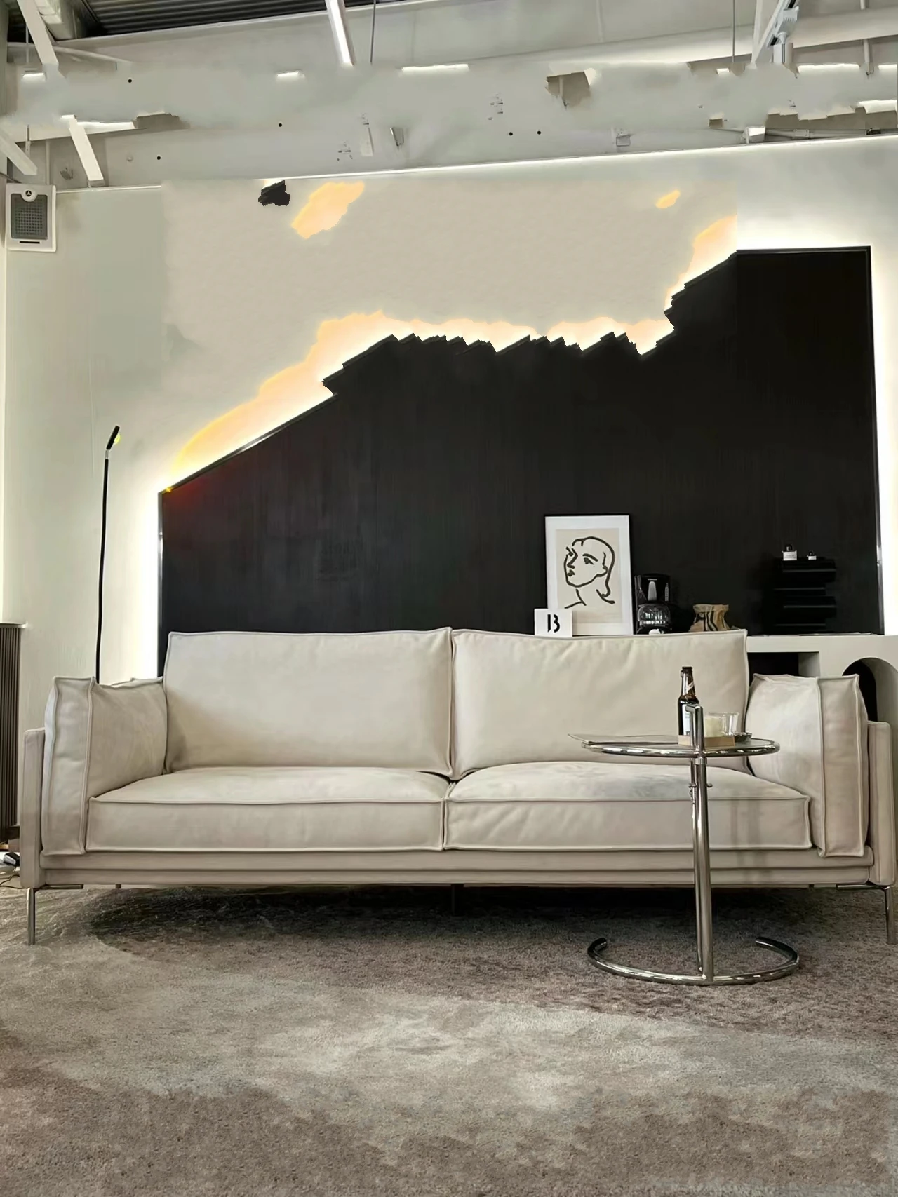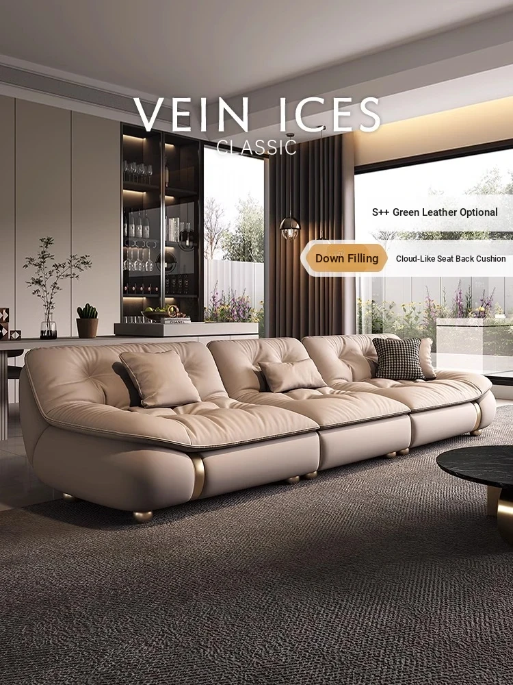 Italian Minimalist Luxury Genuine Leather Sofa - Modern Chic Design for Living Rooms of All Sizes, Versatile Sectional with Sleek Aesthetics and Comfort