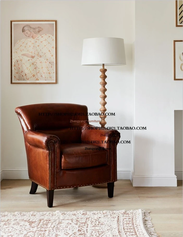 Nordic French Rustic Style Oil Wax Leather Sofa - Single, Double, and Three-Seater for Hotels and Cafés - Elegant and Comfortable Furniture for Cozy Spaces
