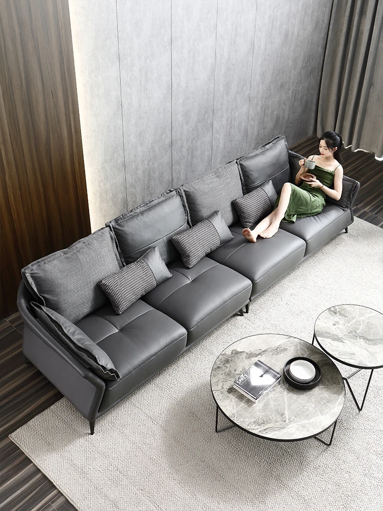 Modern Minimalist Genuine Leather Sofa - Premium Napa Leather, Elegant and Spacious for Large Living Rooms, Comfortable 4-Seat Design, Available in Store