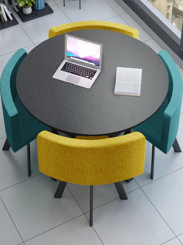 モダンミニマリストデザインのダイニングテーブル&チェアセット|おしゃれなラウンドテーブル4脚付き|コンパクトな小型住居に最適な会議・接待用テーブル!