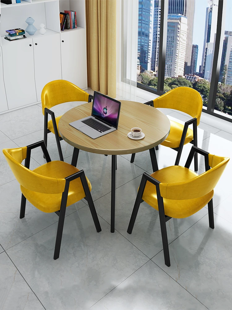 シンプルで個性的な洽談テーブル&チェアセット!リラックスできる北欧スタイルの小さな丸テーブル付き。販売所や接待エリアに最適で、お客様を心地よくお迎えします。
